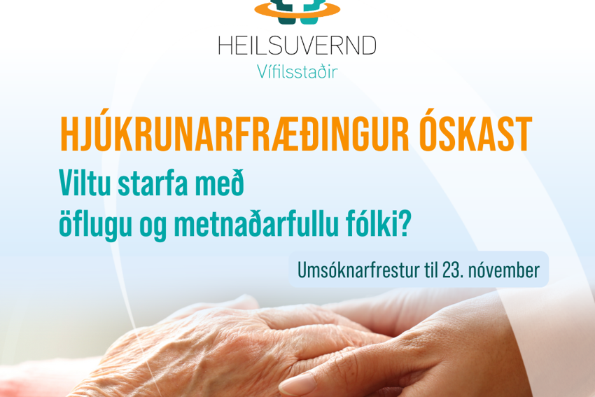 Við leitum nú að hjúkrunarfræðingi til starfa. Um 80-100% starfshlutfall er að ræða. Umsóknarfrestur er til og með 23. nóvember 2025.