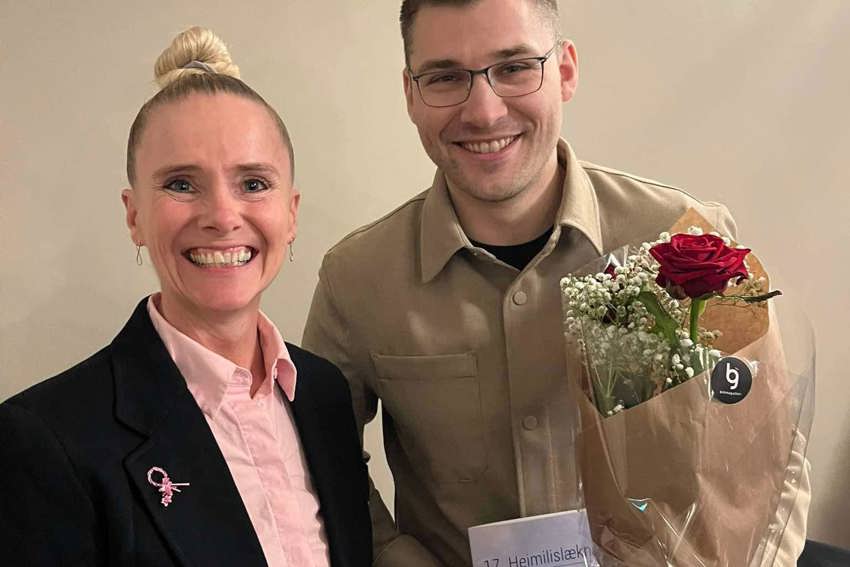 Gunnar Björn Ólafsson, læknir hjá Heilsuvernd Heilsugæslu var verðlaunaður fyrir áhugaverðasta erindið á Vísindaþingi Heimilislækna 2024. Með honum Linda Kristjánsdóttir yfirlæknir.